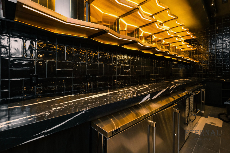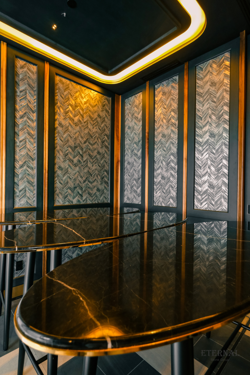 Enigma, a distinguished restaurant in Toronto, entrusted us with their designer's vision. Crafted by a professional architect, this project required specialized contouring that Eternal Stone could provide.